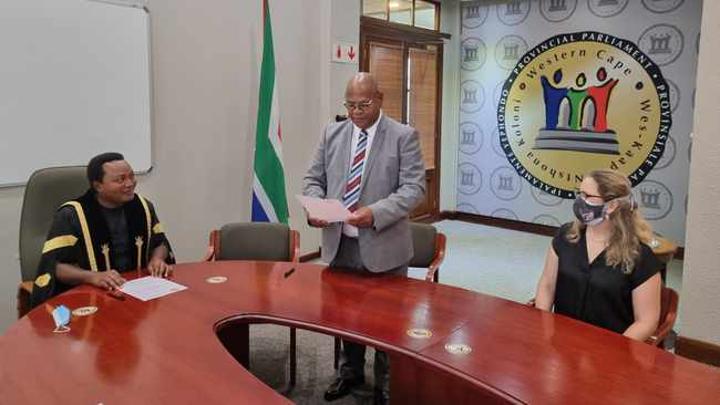 The ceremony was conducted by the Speaker and witnessed by the chief whip Mireille Wenger (DA) and officials of the legislature.