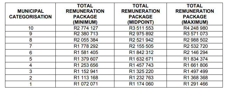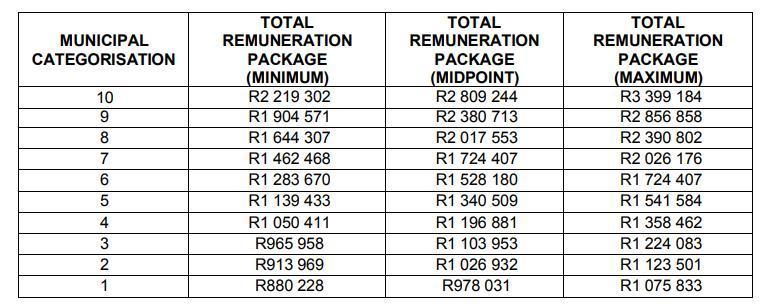 These officials can vary from R880 thousand to R3.40 million, depending on the municipal categorisation and remuneration package:
