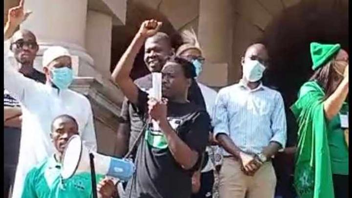 The chants were led by Jackie Shandu the convener for Phoenix Massacre victims who led a protest on Thursday against the murders that took place in the township during a wave of looting and violence three weeks ago.