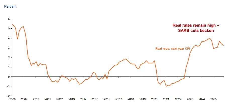 “The real repo rate, which is the repo rate minus inflation, is still fairly high and therefore encourages the Reserve Bank’s proclivity for lower interest rates.”