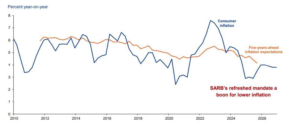 Ballim explained that the Reserve Bank’s frontrunning of the shift to a lower inflation target and its clarity in communicating its intention to ensure inflation remains close to 3% have helped bring expectations downwards.