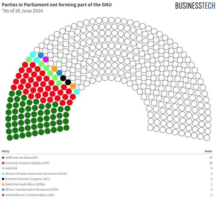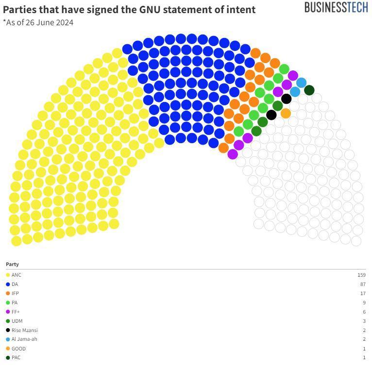 Those who have agreed to form part of the GNU collectively hold 287 (71.75%) out of 400 seats in Parliament, giving them a supermajority—which is one of the key reasons some have opted to steer away from the GNU.