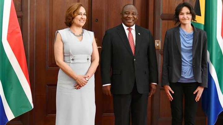 The new Ambassador of Turkey to South Africa Ayşegül Kandaş, accompanied by her daughter Gülce Aksoy, also presented her letter of credence to Ramaphosa, expressing “warm wishes” from Turkish President Recep Tayyip Erdoğan.
