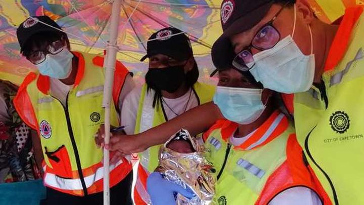 City of Cape Town’s Disaster Risk Management Centre volunteers Marylin Afrika, Rahdee Salie, Judith Henn and Aaliyah Anthony assessed the situation and found the baby was already crowning.
