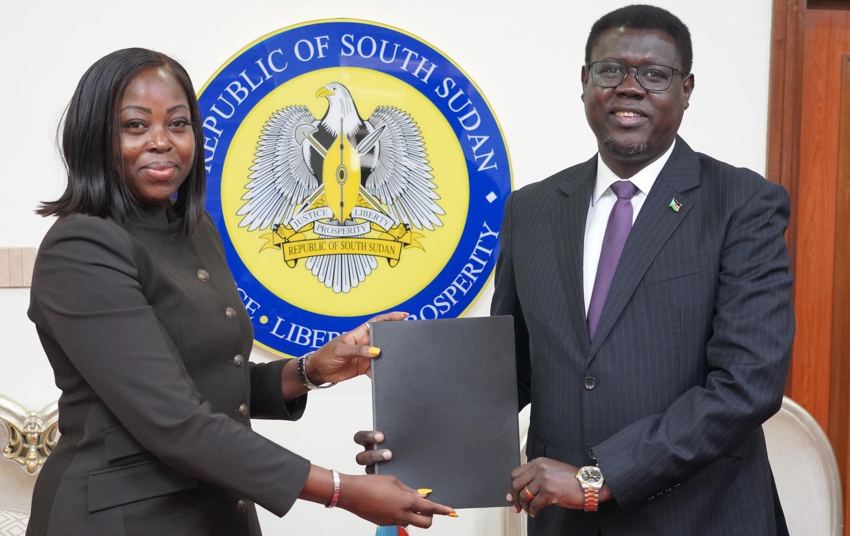 Monday Semaya K. Kumba, the Minister of Foreign Affairs and International Cooperation for South Sudan, received the appointment letter for Ms. Mary Juan Lotua in Juba on Monday.