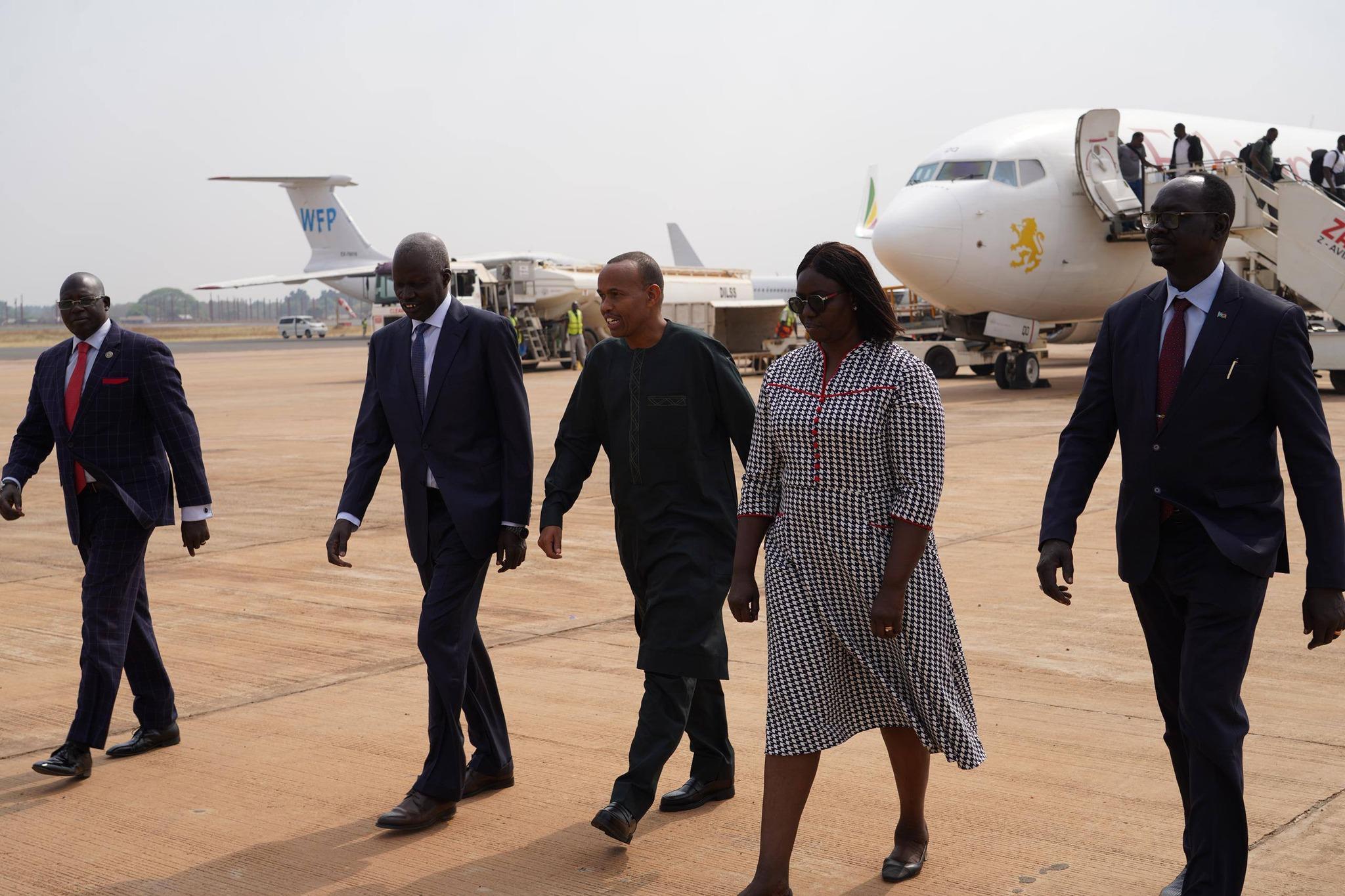 Ambassador Moussa Djama Ali arrived in Juba yesterday and was warmly received by Ambassador Kureng Akuei Pac Garang, Director General of Multilateral Relations at the Ministry of Foreign Affairs and International Cooperation.