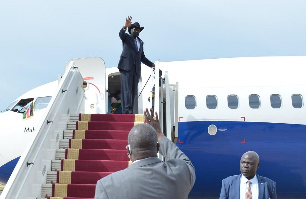 President Kiir was seen off at Juba International Airport by the First Vice President Dr. Riek Machar Teny, who has now been left as the acting head of state, as well as other senior government officials.