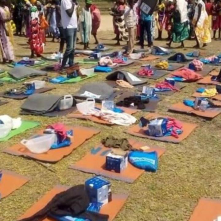 The donated nonfood items include mosquito nets, sleeping mats, dignity kits, and washing soap.