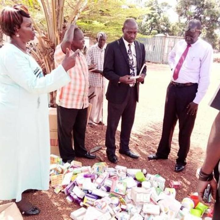 “The inspectors have brought here the drugs that expired since 2018, others 2019, 2020, 2021,” Dawa said. “On top of that the governor banned unwanted alcohol like the Star Gin, now we have also confiscated then because it is harmful to people’s health.”