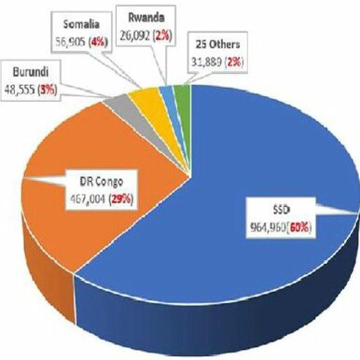 According to the minister, by the end of February, Uganda had a total of 1,595,405 refugees, of whom 964,960 were from South Sudan. The number has since grown, with more than 35,000 new arrivals in March and April from DRC.