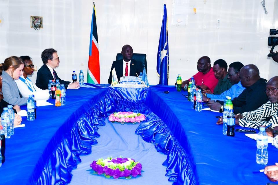 However, Governor James Odhok Oyay briefed the US ambassador on the government’s progress, citing security improvement in the state, while also highlighting humanitarian challenges facing the state as Upper Nile State receives an influx of returnees from Sudan.