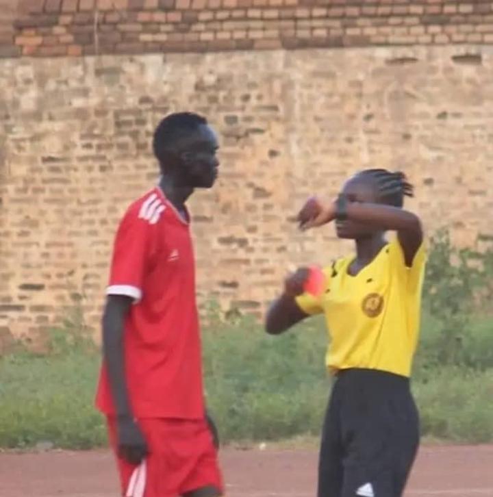 The incident occurred on Sunday during the game between Tadamon and Al-haly – where Ms. Sezarina Gabriel, a female referee red-carded Al-haly’s player named Mario over on-pitch misconduct.