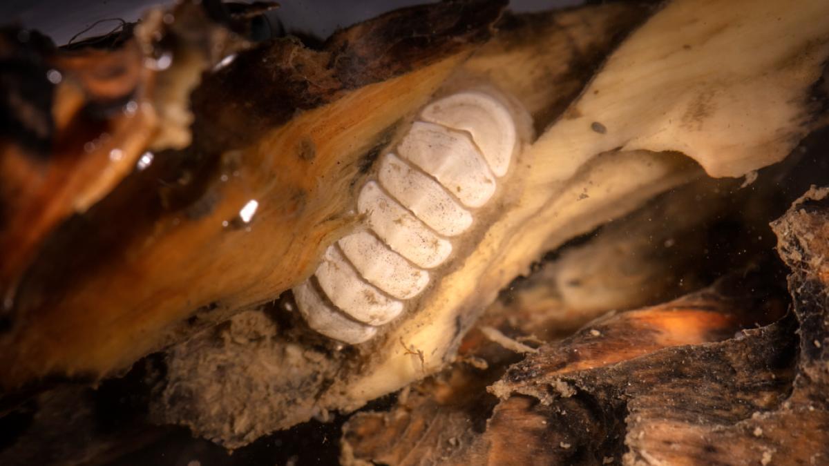 وفي دراسة جديدة نشرت في دورية “بيودايفرستي داتا جورنال” (Biodiversity Data Journal)، يصف العلماء الكائن المكتشف مؤخرا بأنه يملك ثماني صفائح درعية على الظهر، كما يملك لسانا كاشطا يوصف بأنه “مدرع بالحديد”، يساعده على حك الغذاء من الأسطح.