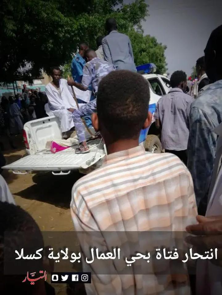 أفريقيا برسالسودان. أقدمت فتاة على التخلص من حياتها بالإنتحار شنقاً حتى الموت، بواسطة (طرحة) ربطتها حول عنقها وعلى شجرة تقع قبالة محطة “الغسال” بحي العمال بمدينة كسلا ، في عملية تدعوا للدهشة والإستغراب على تصرف الفتاة خاصة وأن عمرها لا يتجاوز العاشرة سنوات،. تحرر محضر بالواقعة شرطة الأدلة الجنائية وتم التحفظ على الجثة تحت تصرف إدارة الأدلة الجنائية التي تولت التحقيق، وسط ذهول ودهشة الجماهير الذين توافدوا إلى موقع الجريمة فور سماعهم خبر الفاجعةالتيار