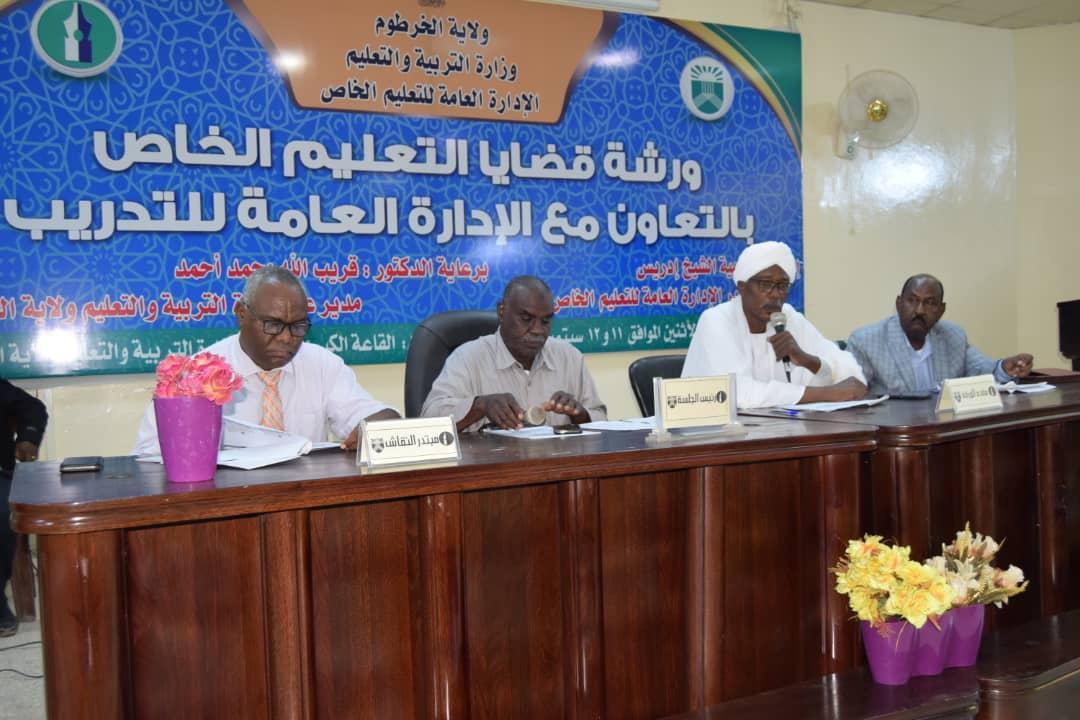 وخلال كلمته في الجلسة الافتتاحية للورشة قدم السيد مدير عام التعليم بولاية الخرطوم سردا تاريخيا عن مسيرة المدارس الأهلية في السودان ، فكانت هذه المدارس الأهلية ركيزة التعليم بعد أن وهبها مؤسسوها للدولة ،