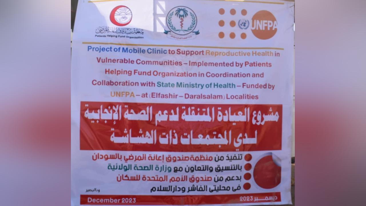 جاء ذلك خلال وداعه اليوم من أمام مقر الوزارة بالفاشر العيادة الطبية الجوالة التي سيرتها الوزارة بالتنسيق مع صندوق إعانة المرضى وبدعم من صندوق الامم المتحدة للسكان إلى محلية دارالسلام لتقديم خدمات الصحة الإنجابية المتكاملة للاستجابة والتصدي لحالات الزيادة في تعثر الحمل والولادة وسط الأمهات والتي أدت إلى حدوث أكثر من (14) حالة وفاة خلال شهر نوفمبر المنصرم.
