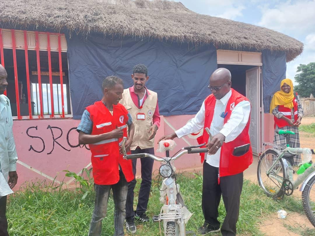 إلى ذلك سلم الأستاذ آدم اللكيب مدير فرع الهلال الأحمر بولاية القضارف عدد ثمان عجلات هوائية للمتطوعين بمعسكري أم راكوبة والطنيدية لتسهيل عملية الحركة داخل المعسكرين لإستكمال برنامج حماية الروابط العائلية بدعم من الصليب الأحمر.