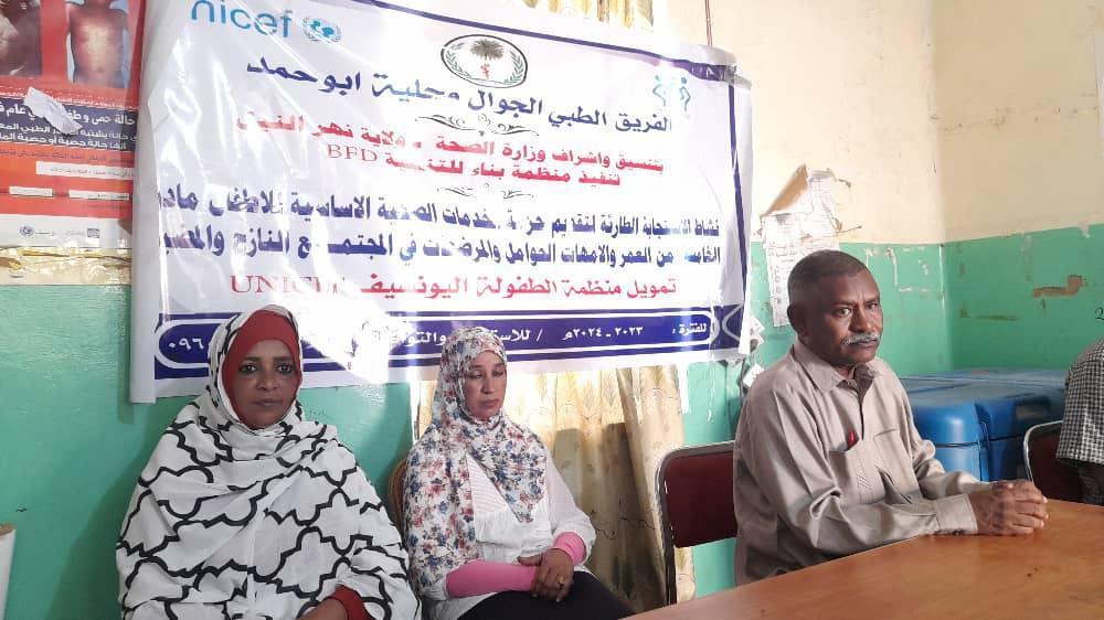 أفريقيا برس – السودان. دشن الاستاذ صديق شنان المدير التنفيذي لمحلية ابو حمد بالإنابة اليوم انطلاقة الفرق الجوالة لمشروع الصحة التغذوي والذي تنفذه منظمة بناء للتنمية بتمويل من منظمة الطفولة (اليونسيف) وبإشراف وزارة الصحة بولاية نهر النيل بحضور الاستاذه فاطمه عثمان احمد مدير الادارة العامة للصحة بالمحلية والاستاذ ابراهيم محمد ابراهيم ممثل منظمة بناء للتنمية والأستاذة نجوي محمد من وزارة الصحة، داعياً للوصول لكل المناطق الريفيه ومتابعة كل حالات الاطفال الصحية والتغذوية، مؤكدا دعم ورعاية الحملة حتى يستفيد منها كل مواطني المحلية بمختلف مواقعهم.
