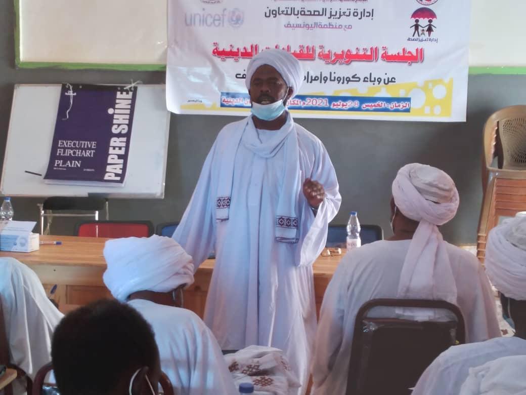 أفريقيا برسالسودان. نظمت إدارة تعزيز الصحة التابعة لوزارة الصحة بولاية شمال دارفور بالتعاون مع مكتب منظمة اليونيسف بالولاية اليوم بقاعة ادارة الشئون الدينية بالفاشر جلسة تنويرية للقيادات الدينية بالولاية حول جائحة كورونا وأمراض فصل الخريف وكيفية الوقاية منهما . وقالت ممثلة وزارة الصحة اسيا محمد عبدالله أن تنظيم الجلسة للقيادات الدينية يجئ في اطار تنفيذ خطط الوزارة الرامية لتوعية كافة الفئات الاجتماعية بالمستجدات الصحية حتى يتمكنوا من حماية أنفسهم، مؤكدة في ذلك اهمية الادوار التي تقوم بها القيادات الدينية في التوعية تجاه القضايا الصحية لما تتمتع بها من ثقة في أوساط المجتمع.