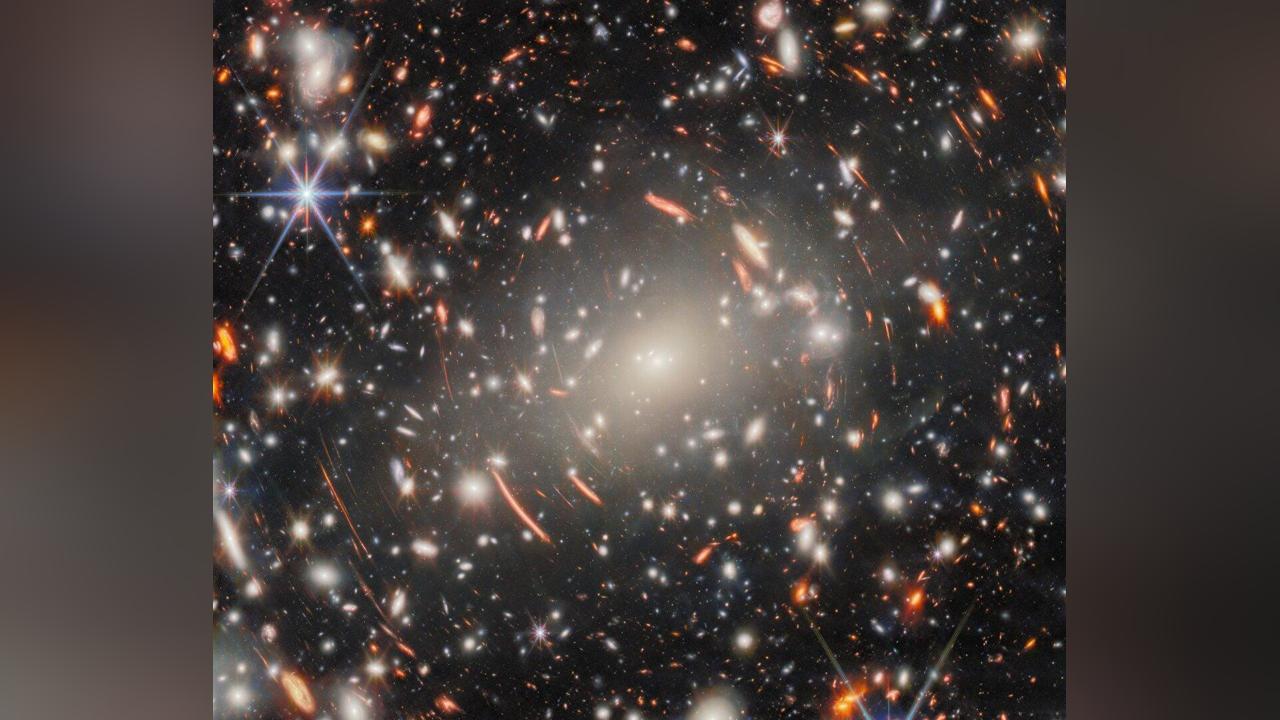 وفي الصورة الجديدة، تظهر مجرة مركزية إهليلجية ضخمة ذات لون أبيض ساطع، تمثل نواة عنقود أبل إس 1063، وتظهر حولها أقواس حمراء متوهجة قصيرة ومنحنية، وهي صور لمجرات خلفية بعيدة تم تكبيرها وتشويهها بفعل ظاهرة العدسة الجاذبية، بحسب ما جاء في بيان صحفي رسمي صادر من منصة مرصد جيمس ويب.