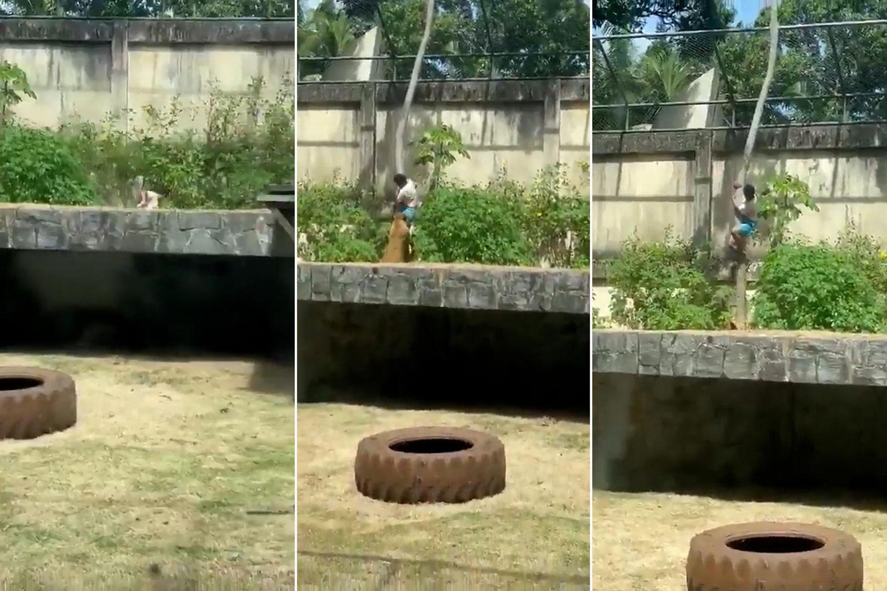 وأظهرت مقاطع انتشرت عبر مواقع التواصل الاجتماعي الرجل وهو يتسلق سياجا فوق جدار يبلغ ارتفاعه نحو ستة أمتار، قبل أن ينزل عبر شجرة إلى داخل الحظيرة، حيث كانت اللبؤة تستريح بجوار بركة مياه.