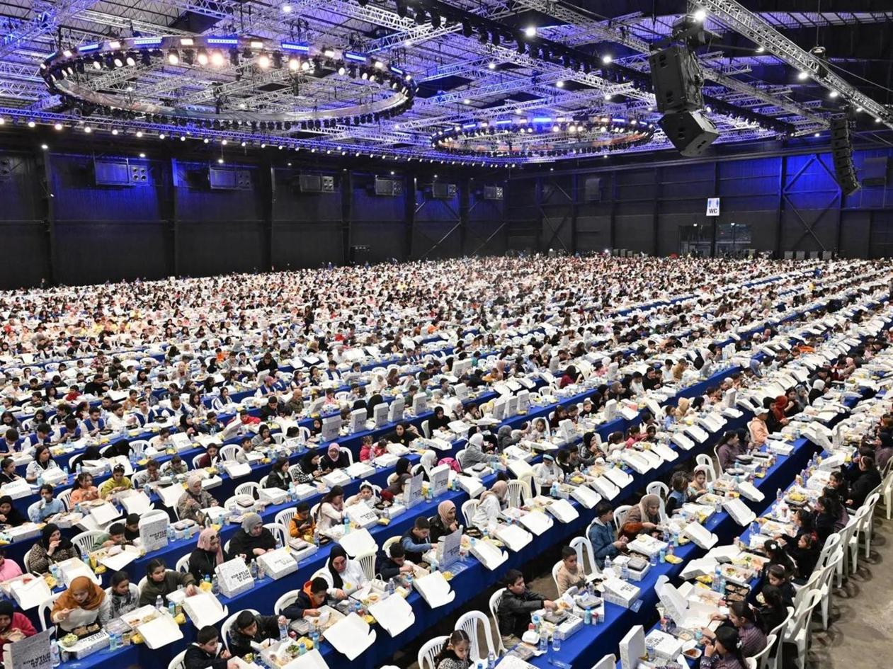 وأقامت جمعية “أجيالنا” اللبنانية الأهلية المائدة الضخمة في معرض “البيال” على الواجهة البحرية لبيروت، برعاية رئيس الحكومة نواف سلام، وجلس حول المائدة أكثر من 5700 صائم، من بينهم أيتام وعائلات لبنانية وفلسطينية ومتطوعون من مدارس وجامعات وجمعيات أهلية.