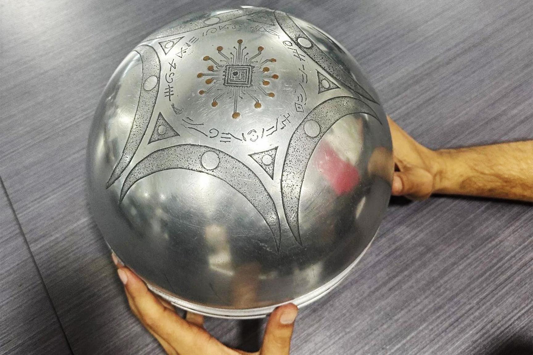 واستخدم هذا الفريق الأشعة السينية لفحص الكرة، واكتشفوا أنها تتميز ببنية فريدة من 3 طبقات معدنية مختلفة الكثافة، مع نسب نقاء عالية للألمنيوم وبعض المعادن النادرة، إضافة إلى وجود رقاقة إلكترونية محاطة بـ18 كرة ميكروية (ميكروسفيرات) حول نواة مركزية أطلقوا عليها اسم “شريحة”، بسبب ترتيبها الدقيق وموقعها داخل الكرة، مما يشير إلى وجود تكنولوجيا متقدمة أو هندسة متعمدة.