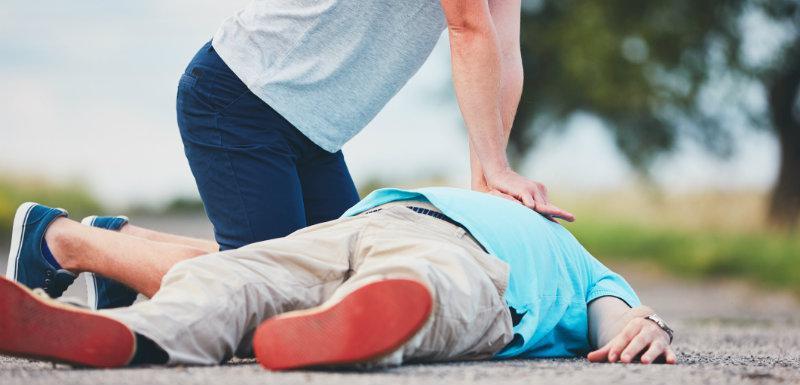 حاول الحصول على رد من خلال هز الشخص. تحقق من وجود نبض. اطلب من شخص قريب الاتصال بالطوارئ. ابدأ في الضغط على الصدر 100 إلى 120 مرة في الدقيقة حتى وصول المسعفين.