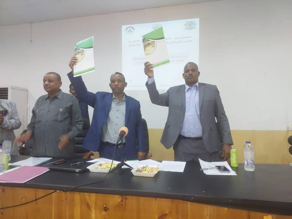 فيما تناول الاستاذ مجاهد مصطفى الامين العام للمجلس الاعلى للتدريب المهني دور المجلس في المرحلة القادمة للنهوض بواقع التدريب المهني بكل محليات الولاية شاكرا جهود وتعاون جامعة وادي النيل.