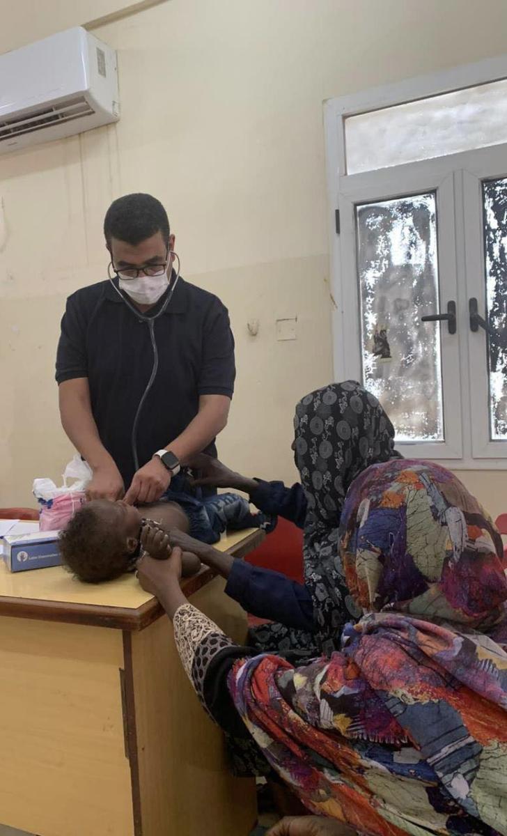 ويضم الفريق الطبي 14 طبيباً، موزعين بالقوافل الطبية الثلاث بالولاية الشمالية ودارفور متمركزين بالأماكن التالية (مستشفى دنقلا التخصصي، قرية السليم، محلية ارتدي، محلية الشيخ شريف، محلية الخناق).
