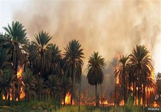 حريق بمنطقة نوري يلحق أضراراً بالنخيل واستمرار حصر الخسائر