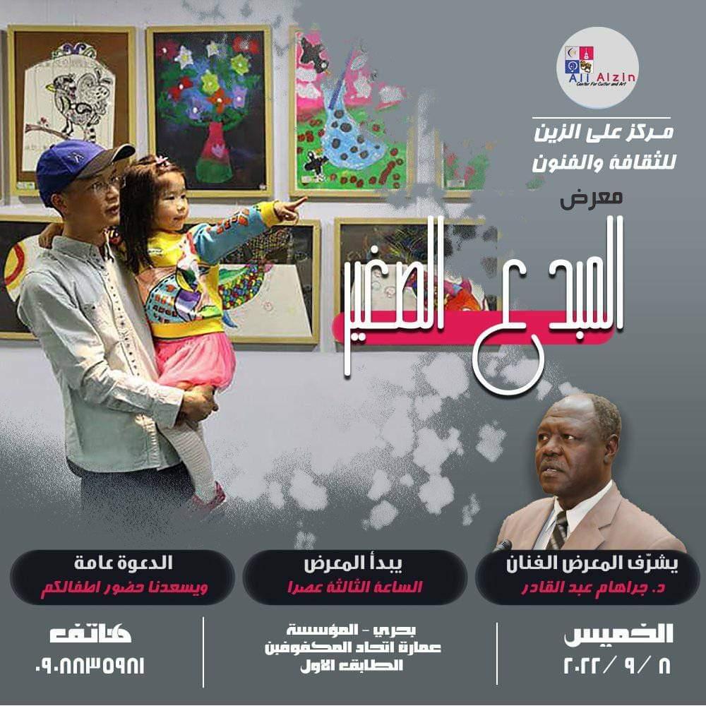 أفريقيا برس – السودان. يشرف وزير الثقافة والإعلام دكتور جراهام عبد القادر حفل افتتاح معرض المبدع الصغير الذي ينظمه مركز على الزين للثقافة والفنون عند الساعة الثالثة بعد ظهر يوم الخميس الموافق 8 سبتمبر 2022 م بعمارة اتحاد المكفوفين بالمؤسسة بحرى.