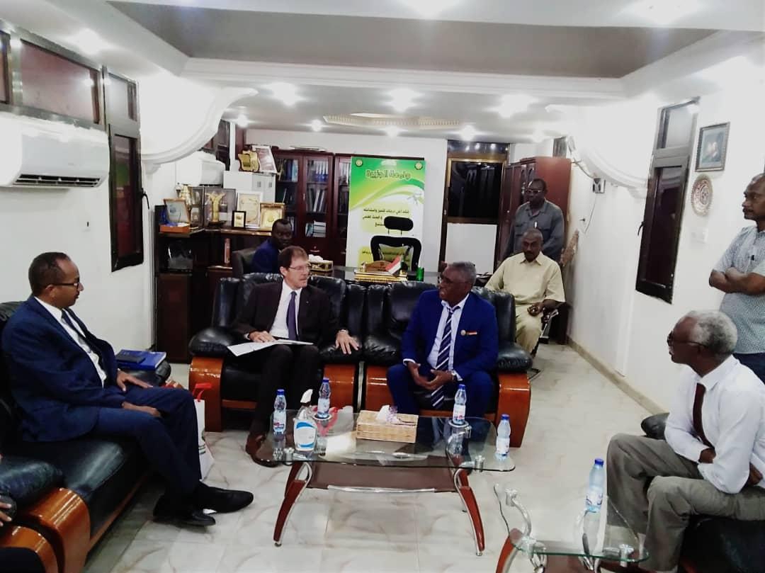 أفريقيا برس – السودان. إستهل السفير الكندي بالخرطوم آدريان نور فولك زيارته لجامعة الجزيرة اليوم بلقاء البروفيسور محمد طه يوسف مدير جامعة الجزيرة وعدد من قيادات الجامعة وعمداء الكليات حيث تعرف السفير على نشأة الجامعة ومراحل تطورها والمراكز المتخصصة بالجامعة وعلاقة الجامعة بالمجتمع والخطط المستقبلية لنهضة الجامعة في مختلف المجالات .