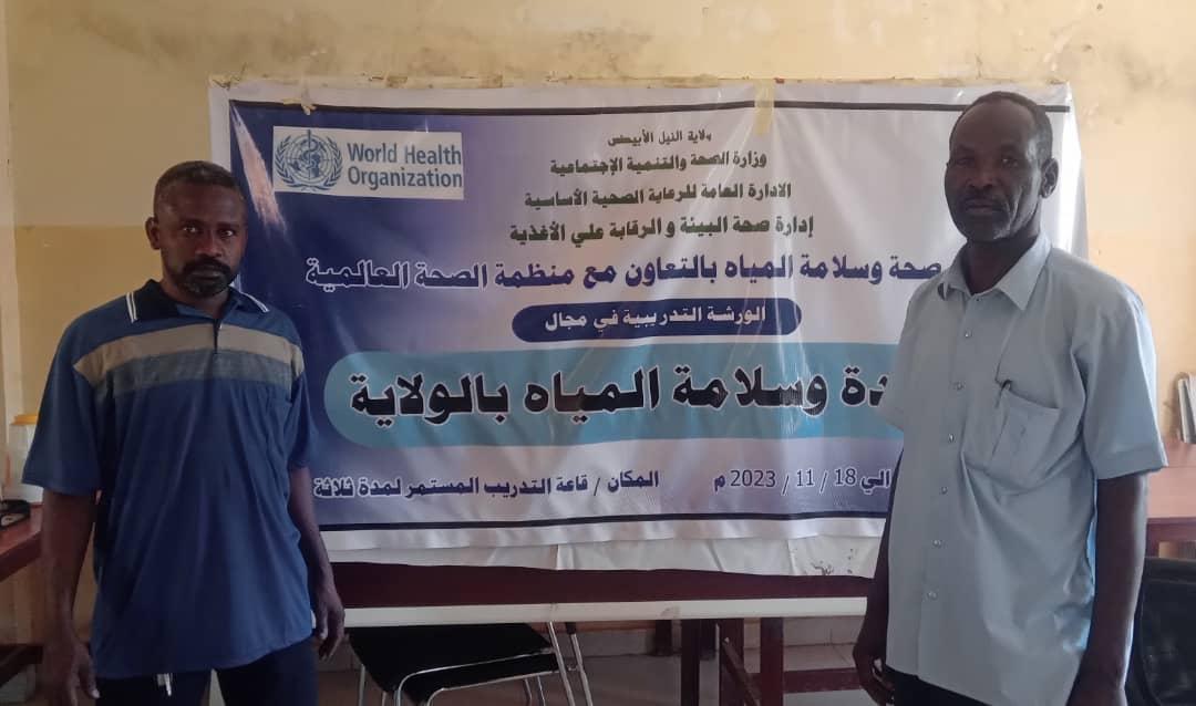 ثمن محي الدين عزالدين مدير ترصد وجودة وسلامة المياه بادارة صحة البيئة بوزارة الصحة بالولاية جهود منظمة الصحة العالمية في دعم انشطة الترصد وجودة وسلامة المياه، وقال ان الدورة تأتي ضمن خطة الادارة لمجابهة الكوليرا وأضاف ان الدورة تستهدف خمسة محليات في انشطة كلورة المياه خارج الشبكة ومتابعة جودة وسلامة المياة داخل الشبكة وتستمر الدورة لمدة ثلاثة ايام يعقبها برنامج عملي لمدة شهر لجمع عينات ومتابعة كلورة المياه ورصد وسلامة المياه.