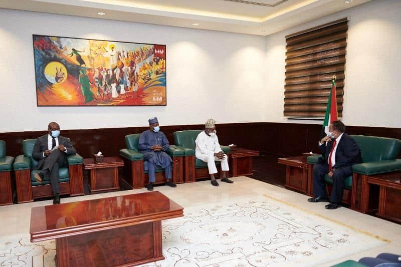 افريقيا برس – السودان. إستقبل رئيس الوزراء د. عبد الله حمدوك اليوم الخميس، برئاسة مجلس الوزراء رئيس جمهورية نيجيريا الأسبق أولوسيقون أوباسانجو ووفد مركز الحوار الإنساني برئاسة المدير الإقليمي للمركز د. باباتوندي تولو أفولابي.
