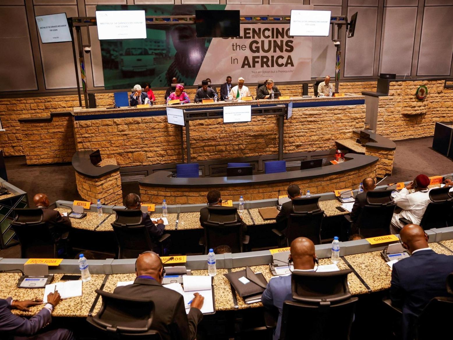 وقدم رئيس مفوضية الاتحاد الأفريقي موسى فكي في الاجتماع تقريرا للقادة يتضمن رؤية الاتحاد الأفريقي لحل الأزمة السودانية. وتتضمن الرؤية وقفا شاملا لإطلاق النار وحماية المدنيين وإيصال المساعدات الإنسانية، واستئناف حوار شامل يضم كافة السودانيين.