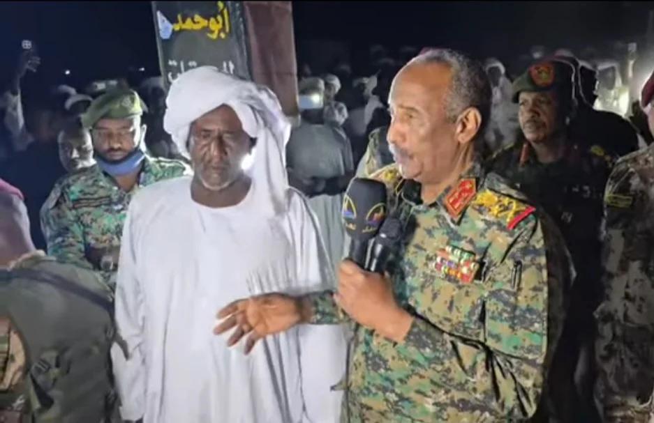 وتابع البرهان” نحن لا نعرف مؤتمر وطني ولا إخوان مسلمين ولا شيوعيين، ما نعرفه هو الشعب السوداني دا بس ديل أهلنا وناسنا ”، وقال البرهان إنه كلما يذهب إلى منطقة ويجد الشعب في استقباله يضعه امام مسؤولية لانهم لا يستقبلوا البرهان وانما القوات المسلحة