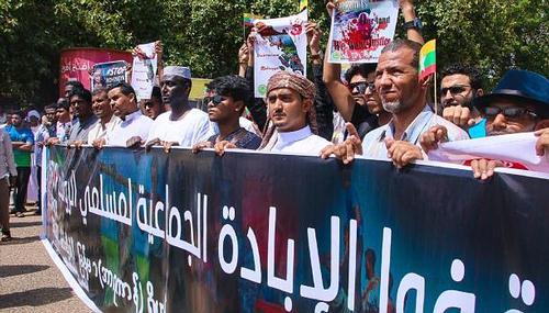 وكانت مظاهرة إحتجاجية تندد بالإنتهاكات الجسيمة والإبادة الجماعية التي يتعرض لها شعب الروهينغا المسلم قد شهدتها الخرطوم بمشاركة الجماعات والتيارات الإسلامية التي قالت بإنها لن تتوقف عن نصرة مسلمي بورما الى أن يطلع العالم مسؤلياته تجاه وضع حد لمعاناتهم وإحترام حقوقهم الدينية والإنسانية.