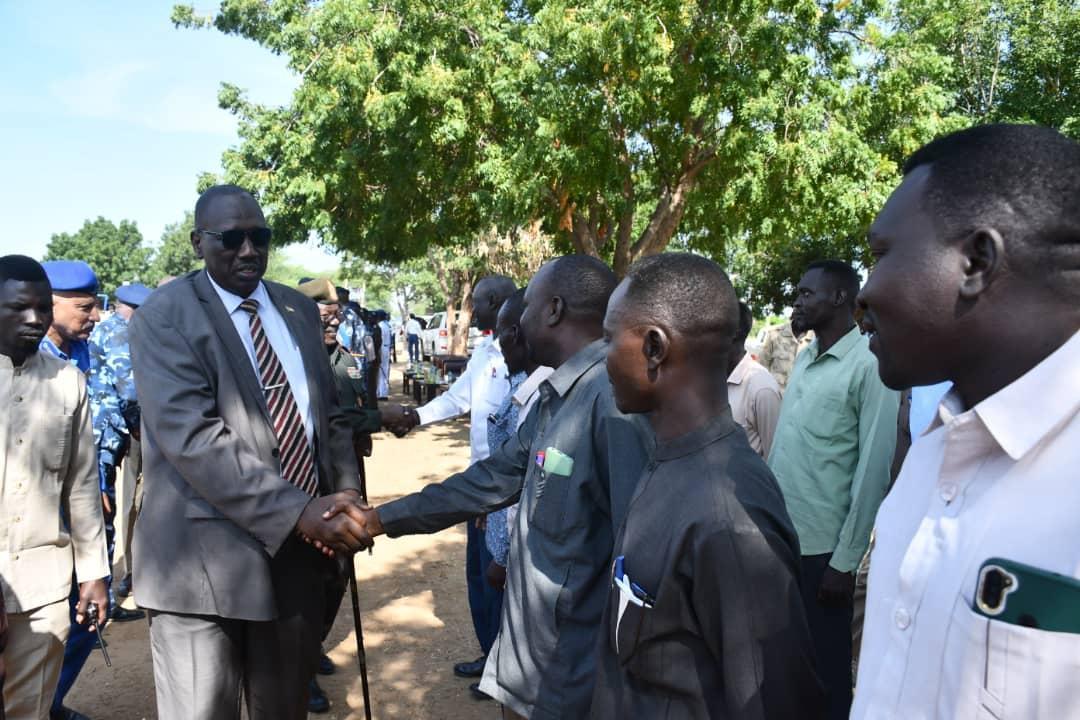 أفريقيا برس – السودان. اكد الفريق أحمد العمدة بادي حاكم إقليم النيل الأزرق رئيس لجنة الأمن بالإقليم على الدور المتعاظم للأجهزة النظامية في ترسيخ دعائم الأمن والإستقرار بالإقليم وتأمين مستقبل البلاد عامة , مؤمنا على دور الشرطة في تأمين الإستقرار وفرض هيبة الدولة وسيادة حكم القانون. جاء ذلك لدى زيارته اليوم معسكر تدريب منسوبي الترتيبات الأمنية الذين يجري إعدادهم للإنخراط في منظومة الإدارات الشرطية في إطار برنامج الترتيبات الأمنية المنبثقة عن إتفاق جوبا لسلام السودان٬ يرافقه عدد من أعضاء حكومة الإقليم وأعضاء لجنة الأمن وقادة الأجهزة النظامية وممثلي الترتيبات الأمنية.