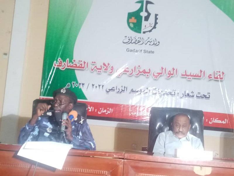 وجدد والي بالقضارف المكلف محمد عبدالرحمن محجوب خلال لقائه المزارعين اليوم حول تحديات الموسم الزراعي حرص حكومة القضارف علي تأمين الموسم الزراعي وحماية المزارعين والحد من انتشار الجريمة ومعاقبة كل من يروع المزارعين خلال الموسم الزراعي.