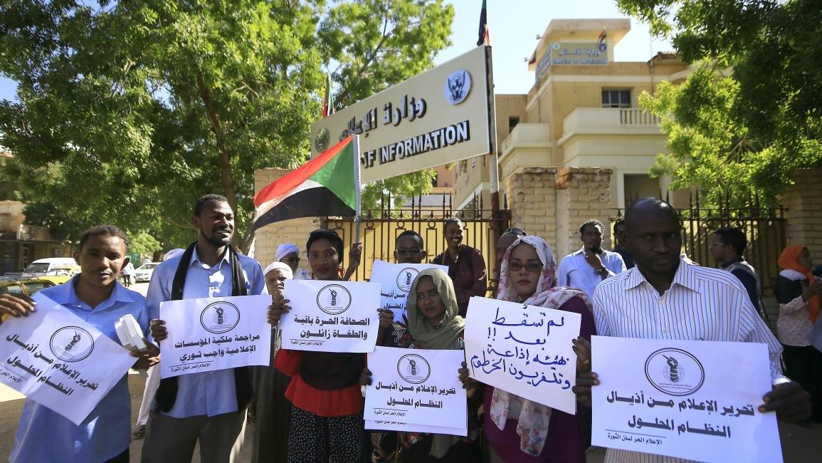 ورفع الصحفيون لافتات عليها، “الصحافة الحرة تقف مع الجماهير ضد الانقلاب العسكري”، و”لا لاستهداف الصحفيين”، و”أطلقوا سراح الصحفيين المعتقلين”، و”الصحافة الحرة باقية والطغاة زائلون”، و”لا لقطع خدمة الإنترنت”.