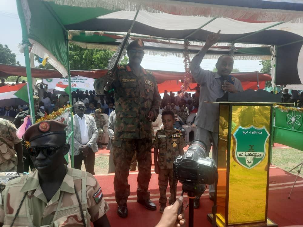 و قدم اللواء معاش عيسى عبدالله تيراب والناظر عوض الكريم محمود زائد قدما كلمة خلال الاحتفال انابة عن قدامى المحاربين والهيئة الشعبية لمناصرة القوات المسلحة اكدا خلالها الوقوف مع الجيش وتقديم السند والعون له حتى يحقق الانتصار على القوات المتمردة ورد كيد اعداء البلاد والمعتدين هذا وقد قدمت فى الاحتفال طابور سير عسكرى الى جانب عرض جوى شاركت فيه مختلف الوحدات العسكرية بالمنطقة العسكرية الشرقية.