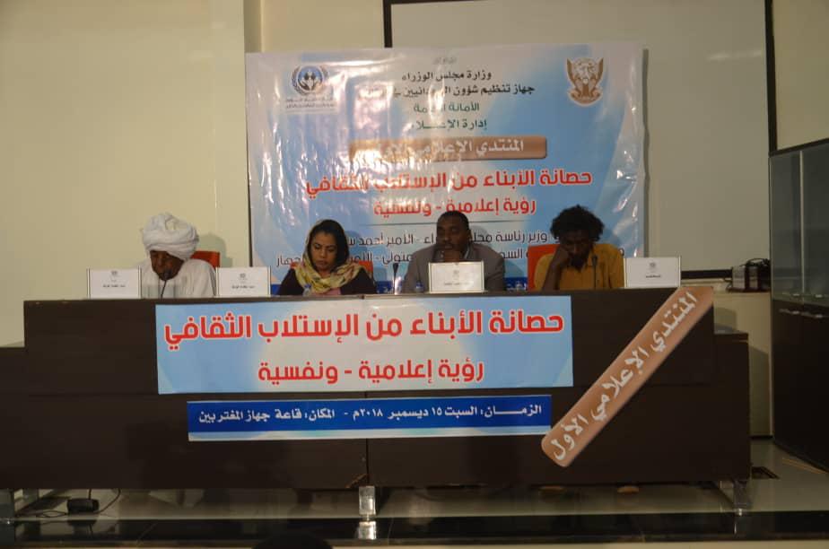 من جانبه وصف السفير عصام عوض متولي وزير الدولة الأمين العام لجهاز تنظيم شؤون السودانيين بالخارج المنتدى الاعلامي الأول لإدارة الإعلام بجهاز المغتربين بالمهم، وقال إن المجتمع يتعرض لاستلاب اقتصادي واجتماعي وثقافي.