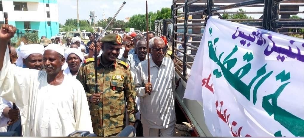 من جهته أشاد قائد الفرقه الثامنة عشر مشاة بولاية النيل الأبيض اللواء الركن سامي الطيب سيد أحمد اشاد بالدعم المتواصل من قبل محليات الولاية مؤكداً أن القوات المسلحة ستظل علي العهد بها في حماية الأرض والعرض والمال والدفاع عن سيادة الوطن وهي تقاتل وتقدم الشهداء والتضحيات في حربها ضد مليشيا الدعم السريع.