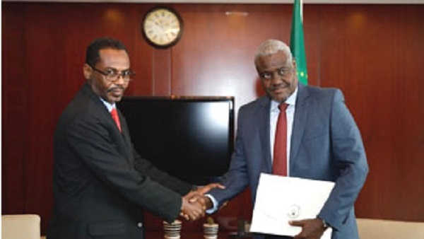 أكدت مفوضية الاتحاد الأفريقي تفهمها لدواعي القرارات التي اتخذها المجلس العسكري الانتقالي في السودان مؤخراً، وتسلم رئيس المفوضية موسى فكي، بأديس أبابا، رسالة خطية من رئيس المجلس العسكري، الفريق أول عبدالفتاح البرهان، تتصل بتطورات الأوضاع في السودان.
