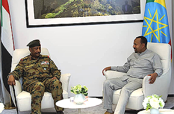 أنهى رئيس المجلس العسكري الانتقالي الفريق أول ركن عبدالفتاح البرهان، زيارة سريعة للعاصمة الأثيوبية أديس أبابا، الثلاثاء، التقى خلالها رئيس الوزراء الإثيوبي آبي أحمد، الذي أكد دعم السودان في كل الظروف عرفاناً لأيادي السودان البيضاء.وعبر الرئيس أبي أحمد عن ترحيبه الكبير برئيس المجلس العسكري الانتقالي، وأعرب عن وقوف إثيوبيا بجانب السودان في كل الظروف عرفاناً لأيادي السودان البيضاء.الناطق الرسمي باسم المجلس العسكري الانتقالي الفريق الركن شمس الدين كباشي، قدم إيجازاً عن الزيارة أكد فيه أن رئيس المجلس العسكري الانتقالي قد قدم تنويراً حول الأوضاع الراهنة في السودان للرئيس الإثيوبي.وأضاف الفريق الركن كباشي أن رئيس المجلس العسكري الفريق أول ركن عبدالفتاح البرهان، قد التقى بمقر السفارة السودانية بالعاصمة الإثيوبية بالسفير إسماعيل شرفي مفوض الأمن والسلم بالاتحاد الأفريقي.وأكد شرفي اهتمام الاتحاد الأفريقي بتطورات الأوضاع بالسودان واستعداده للمساعدة في كل مايطلبه السودان من أجل التوصل لتوافق سوداني.وقد تقدم رئيس المجلس العسكري بشكره لمفوض الأمن والسلم، وأكد ثقة السودان في المجلس وتقديره الكبير للجهود التي يقوم بها الاتحاد الأفريقي ومبعوثه في الخرطوم، مؤكداً العمل تحت مظلة الاتحاد الأفريقي.وأضاف البرهان أن السودان يتطلع إلى التوصل إلى توافق يعبر عن تطلعات الشعب السوداني.