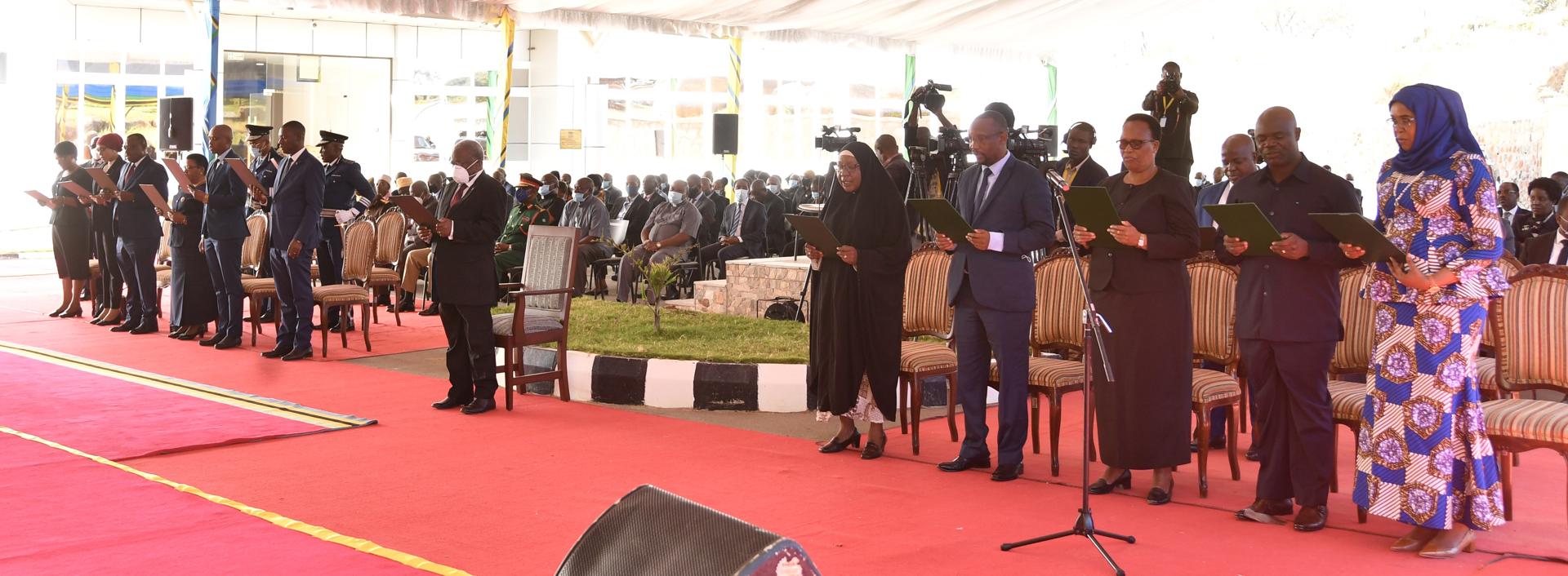 Africa-Press – Tanzania. PRESIDENT Samia Suluhu Hassan at State House-Chamwino in Dodoma, yesterday led swearing in of new Regional Administrative Secretaries (RAS) and Police Officers, among others with a strong call that ‘you go and serve the citizens, not otherwise.’