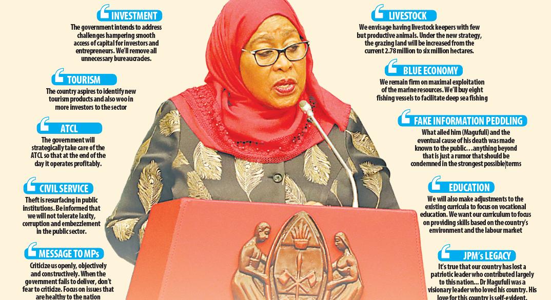 “We are, therefore, going to strengthen the productive sector and other sectors that will provide more employment,” President Samia told the National Assembly in Dodoma in her first address to the august house.