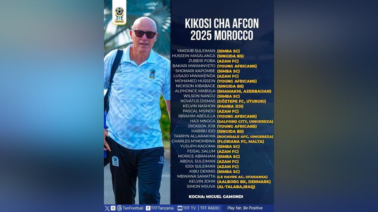 The list, released after weeks of assessment from an initial provisional squad, features a balanced mix of foreign-based talent and standout performers from the Tanzanian Premier League.