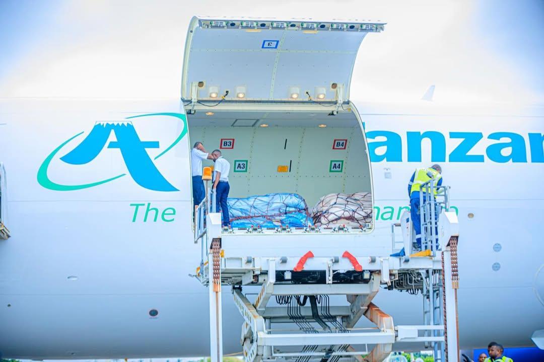 The maize shipment was delivered by an Air Tanzania cargo aircraft and received by a Mozambican government delegation led by Minister for Planning and Development, Salim Cripton Valá.